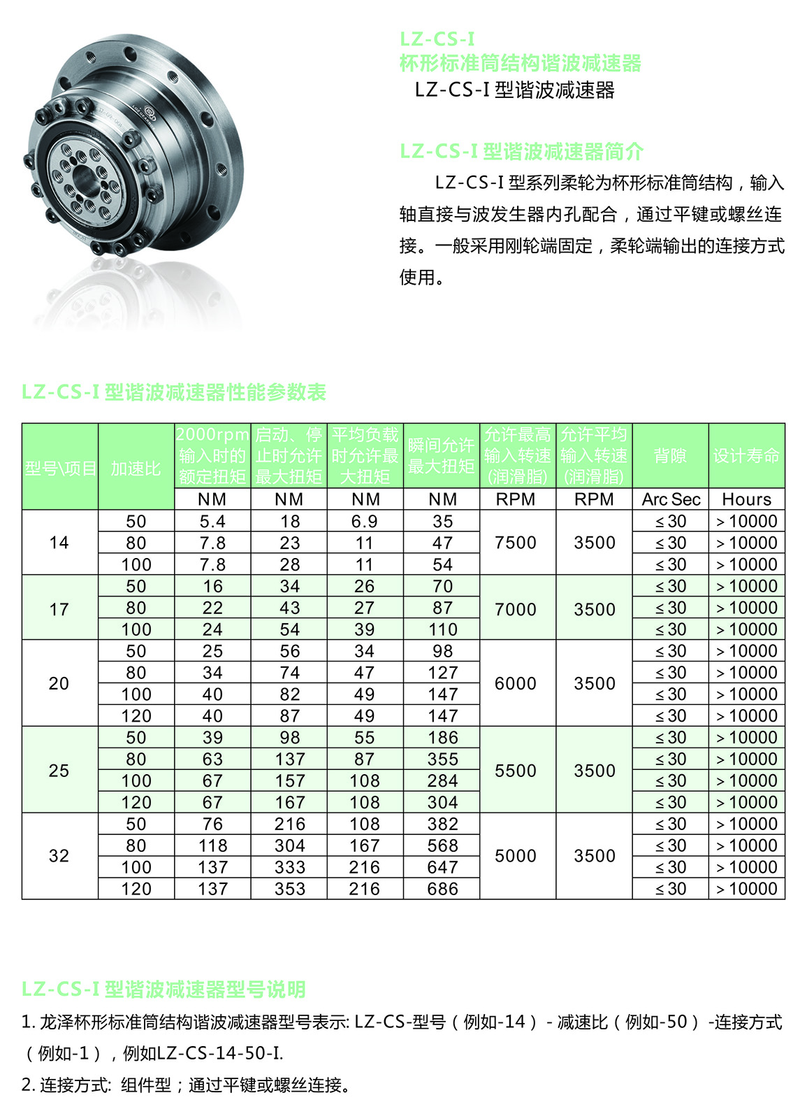Intro:The LZ-CS-I series of flexible wheels are cup-shaped standard cylinder structure. The input shaft is directly matched with the inner hole of the wave generator and connected by flat keys or screws. The end of rigid wheel is fixed and the output of flexible wheel is connected.
